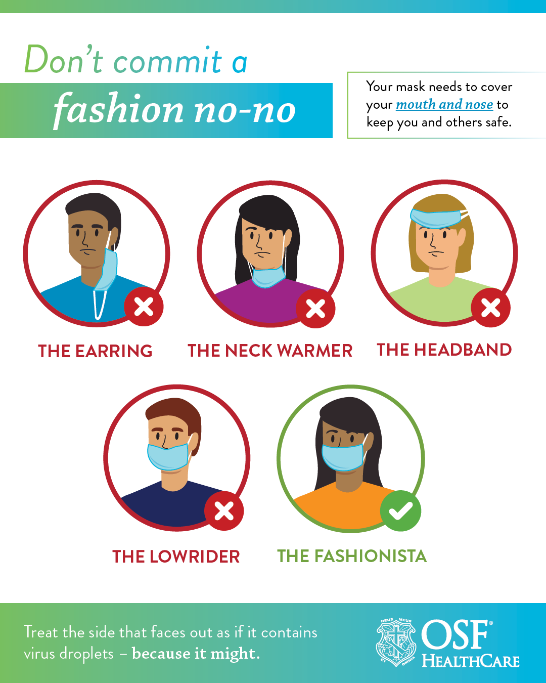 - Wash and dry cloth masks on the hottest setting after each wear.