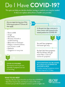 Sometimes COVID-19 symptoms can feel like a cold, flu or allergies. If you’re unsure what your symptoms might mean, try our quick COVID-19 Symptom Quiz. It’s a simple way to get guidance on whether your symptoms line up with COVID-19 or another common illness.